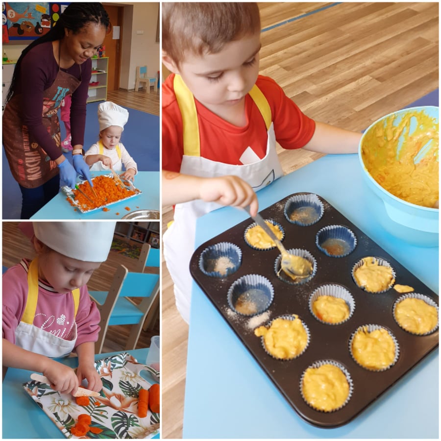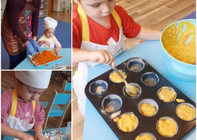 Warsztaty kulinarne gru 9, 2021 | Bez kategorii Warsztaty kulinarne Nasze 3-latki w ramach Europejskiego Dnia Zdrowego Jedzenia upiekły przepyszne marchewkowe muffinki.