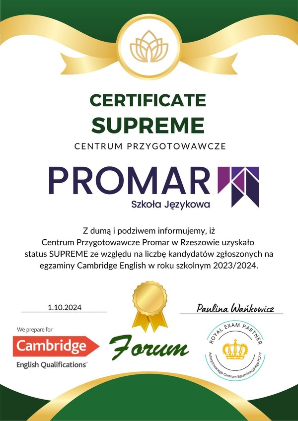 Jesteśmy jedyną szkołą językową w Rzeszowie, w której możesz nie tylko przygotować się do egzaminów Cambridge, ale także zdać je na miejscu! To ogromne ułatwienie i komfort dla naszych kursantów, którzy mają wszystko w jednym miejscu.