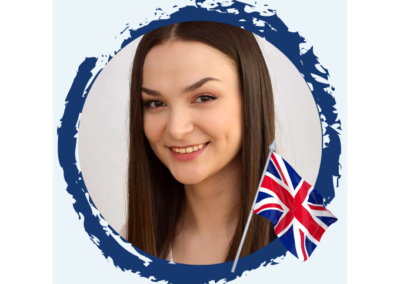 Jestem absolwentką Uniwersytetu Rzeszowskiego na kierunku filologia angielska ze specjalnością nauczycielską. Wybrałam ten kierunek studiów, ponieważ już od najmłodszych lat interesowałam się językiem angielskim i pragnęłam wiązać z nim przyszłość. W szkole kilkakrotnie brałam udział w wycieczkach do Wielkiej Brytanii, gdzie miałam okazję sprawdzić swoje umiejętności w praktyce. Moje zamiłowanie do tego języka sprawiło również, że w szkole średniej wybrałam profil językowy-tłumacz, gdzie mogłam znacznie poszerzyć swoją wiedzę. Podczas studiów miałam również okazję nabyć doświadczenia w nauczaniu, odbywając dwumiesięczne praktyki w szkole podstawowej z dziećmi w klasach 4-8, oraz udzielając lekcji prywatnych. Jestem osobą kreatywną, wesołą, pełną energii oraz gotową na nowe wyzwania, a także uwielbiającą pracę z dziećmi. Prywatnie jestem również miłośniczką kotów, natury i podróży.