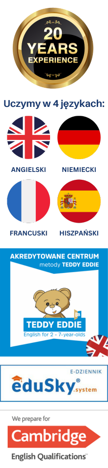 - Współpracujemy z Centrum Egzaminacyjnym Cambridge English Qualifications – bardzo dobrze przygotujemy Cię do egzaminów krajowych: ósmoklasisty, matura oraz międzynarodowych: B2 First, C1 Advanced, IELTS